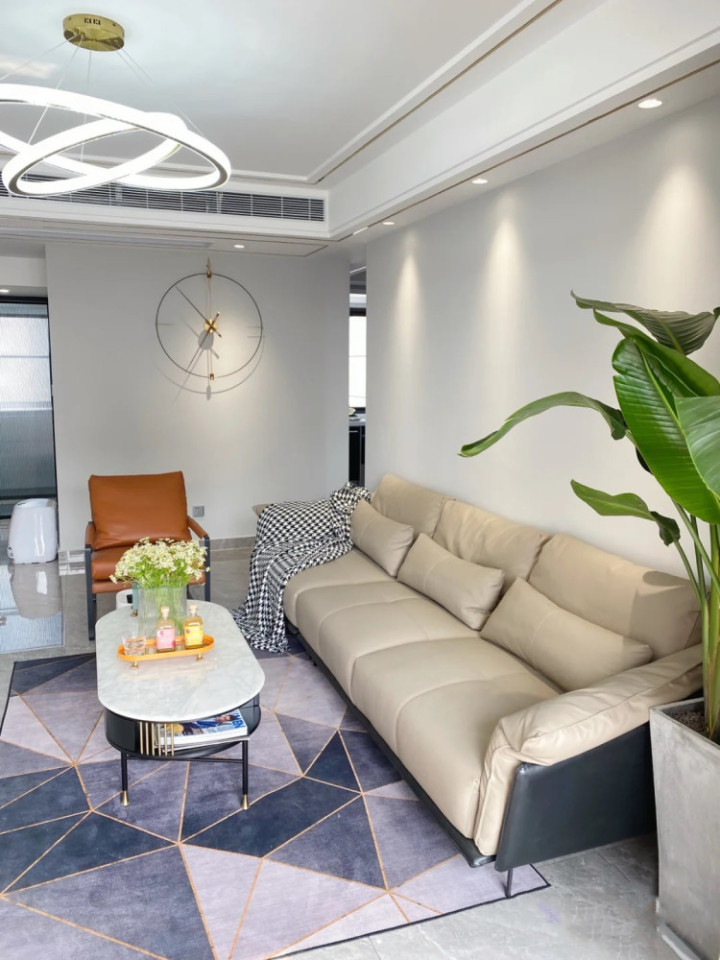 除此以外,我还要劝诫大家尽可能别购置皮质沙发,实在是太难伺候了,并且夏天会黏着腿,冬天坐着又寒冷,着实不如布艺沙发舒适且易于打理。建议客厅里所有的家具,尽最大可能都选取细腿高脚的款式,打理起来简便,而且那种轻盈之感会让客厅显得更为宽敞舒适。